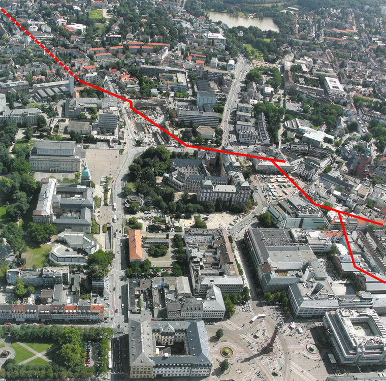 Genau durch Darmstadt verläuft die östliche Hauptrandverwerfung des Oberrheingrabens. Große Teile des westlichen Stadtgebietes von Darmstadt werden von geologisch jungen Sedimenten des Oberrheingrabens aufgebaut. Östlich der Verwerfung dagegen liegen mehrere 100 Millionen Jahre alte Kristallingesteine, die geologisch gesehen dem Odenwald zugerechnet werden. Im Detail besteht die Verwerfung aus mehreren Teilabschnitten unterschiedlicher Orientierung. Der Verwerfungsverlauf ist auch morphologisch an Geländeanstiegen erkennbar, wie zum Beispiel am Staatstheater zu sehen ist.