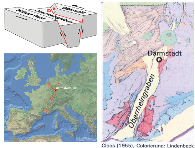 Der Oberrheingraben ist ein Lehrbuchbeispiel für ein kontinentales Rift. Er stellt den zentralen Teil eines seit ca. 40 Millionen Jahren bestehenden, tektonischen Bruchsystems dar, das sich quer durch Europa verfolgen lässt. Der Oberrheingraben hat sich dabei über mehrere Kilometer abgesenkt. Gleichzeitig wurde der Graben im Laufe der Zeit durch Eintrag von Grabenrändern, Meeren und Flüssen mit Sediment verfüllt. Seit ca. 20 Millionen Jahren kommt es durch den Druck der Alpen neben der Absenkung des Oberrheingrabens auch zu einer horizontalen Verschiebung. So haben sich die Gebiete östlich des Oberrheingrabens gegenüber den westlichen um etwa 18 km nach Norden verschoben. Die Häufung von Erdbeben im Bereich des Oberrheingrabens belegt, dass das Bruchsystem auch heute noch aktiv ist.