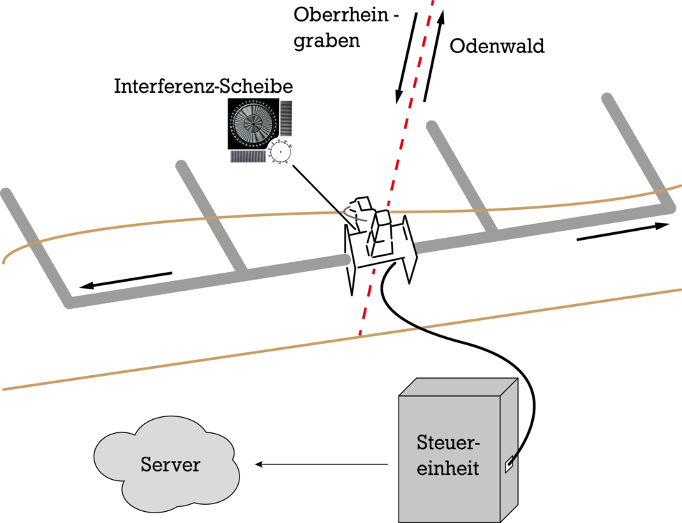 Das Verschiebungsmessgerät war die erste in der Messstation verbaute Apparatur und liefert seit 2007 Messdaten. Das Gerät erfasst opto-mechanisch die Relativbewegungen an der Störung, sowohl in horizontaler als auch vertikaler Richtung mit Genauigkeiten von Hundertstel Millimeter. Hierzu wurde ein Gestänge beidseitig der Verwerfung in das Gestein eingelassen. Relativbewegungen zwischen den zwei, durch die Verwerfung getrennten Gesteinsblöcken, erzeugen optische Interferenzmuster, die in Bewegungsbeträge umgerechnet werden können. Die Datenerfassung erfolgt mittlerweile automatisch über ein Kamerasystem, das die Aufnahmen zur Auswertung direkt an die angebundenen Server übermittelt. Das Messgerät wird in Zusammenarbeit mit dem Institut für Felsmechanik der Akademie der Wissenschaften der Tschechischen Republik betrieben und ist Teil des EU TecNet Projektes mit europaweit mehr als 140 Messstationen.